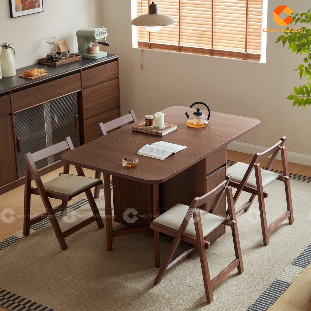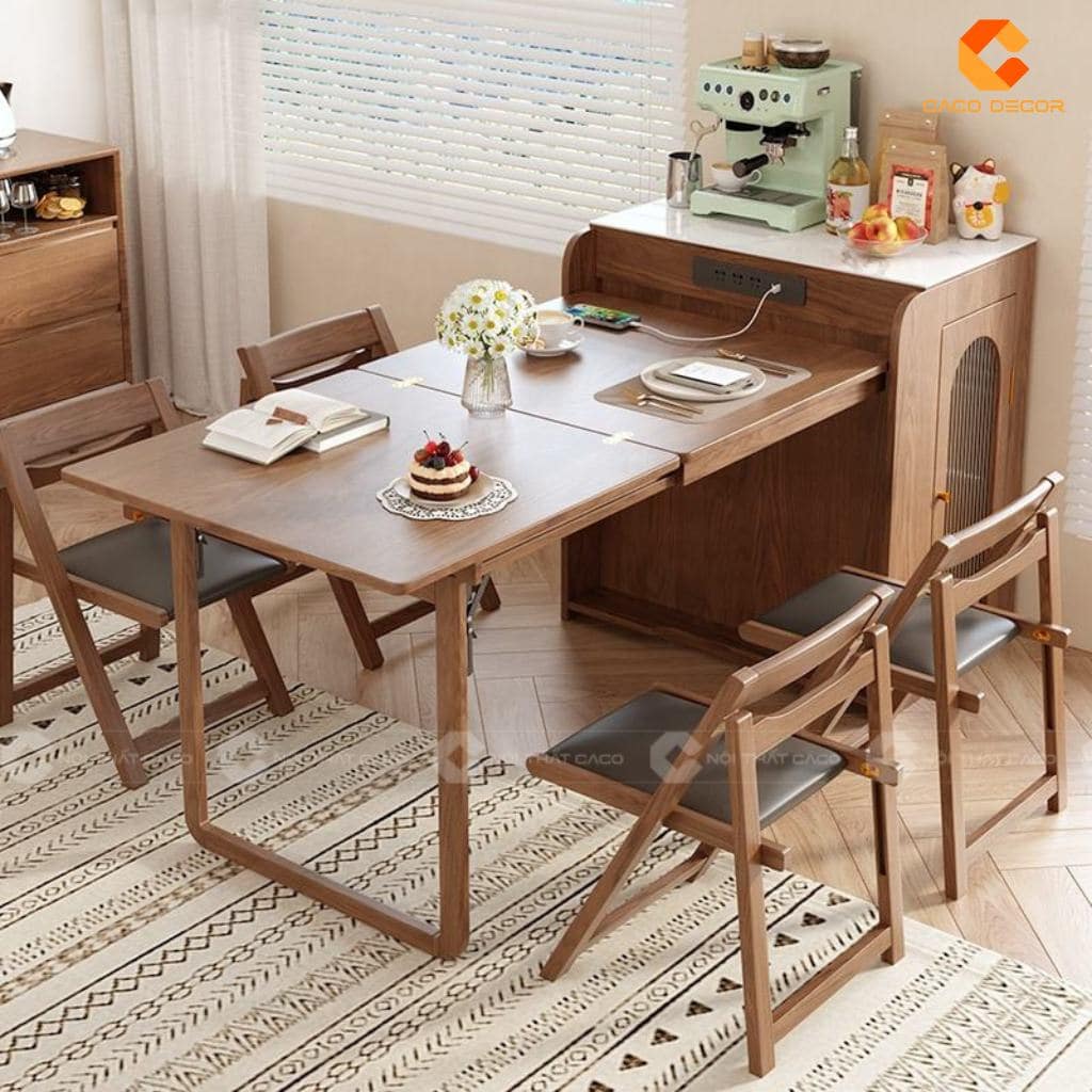 Bàn ăn chung cư thông minh có thể thu gọn khi không dùng, tích hợp ngăn kéo chứa đồ tiện lợi