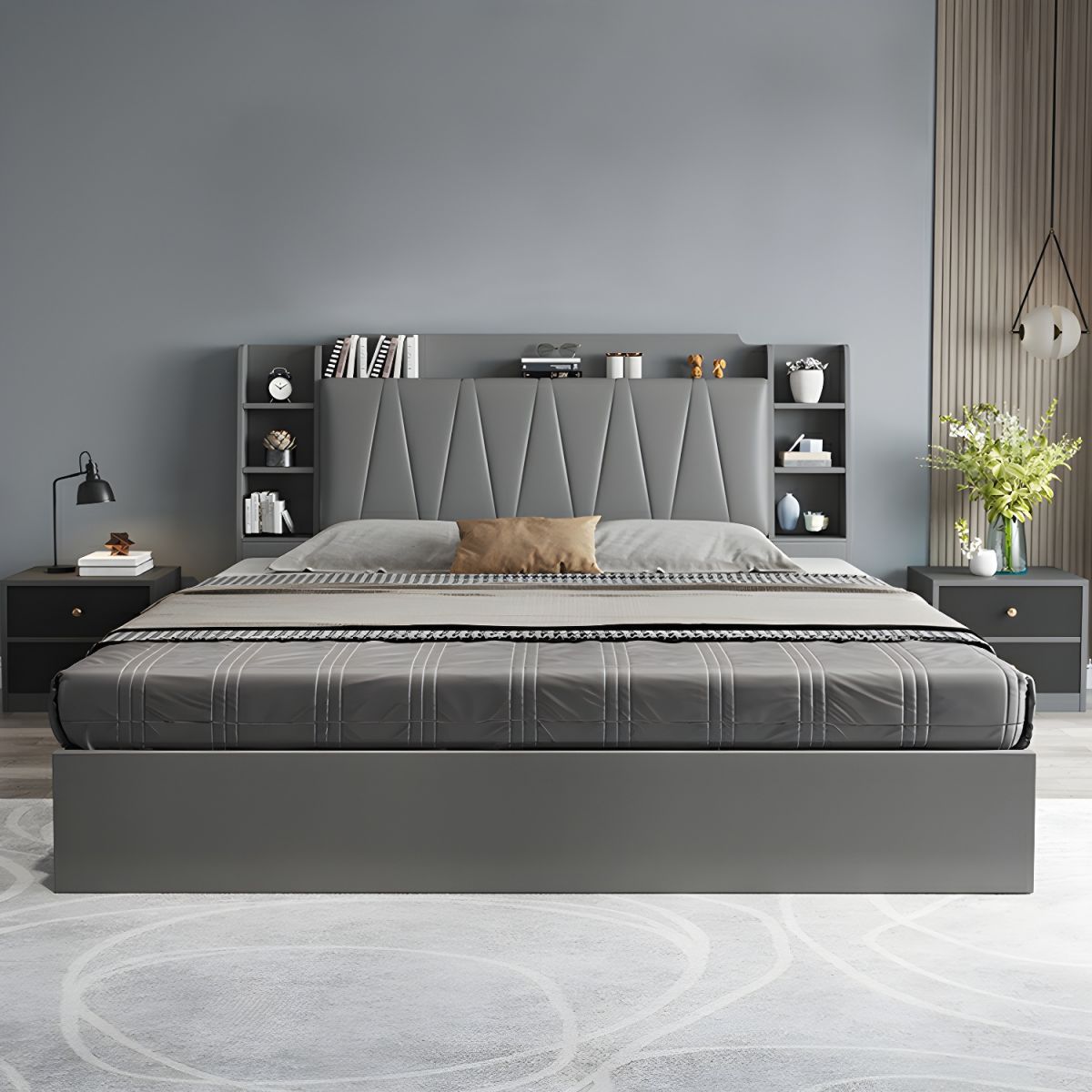 Giường ngủ thiết kế từ gỗ công nghiệp màu xám trắng có hộc kéo