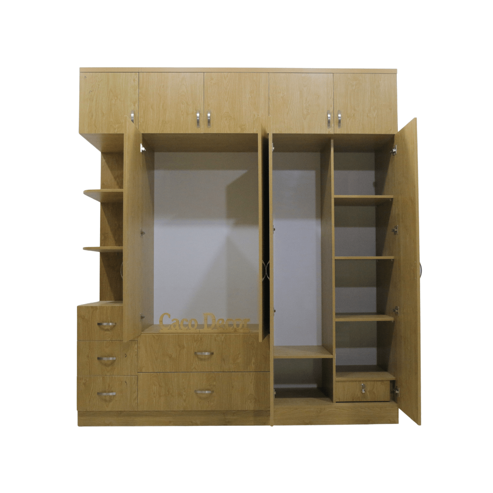 Đến nội thất Caco lựa ngay tủ áo 4 cánh gỗ MDF melamine màu vàng có kệ trang trí